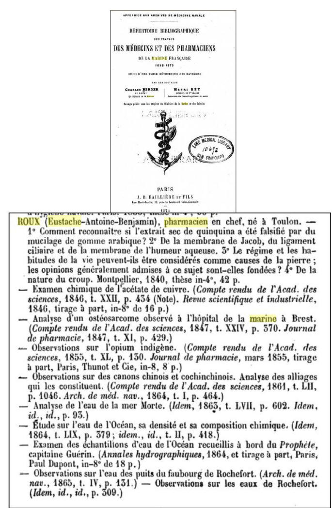 l'École de Médecine navale dispensant les cours de chimie médicale,
