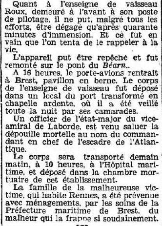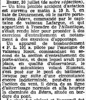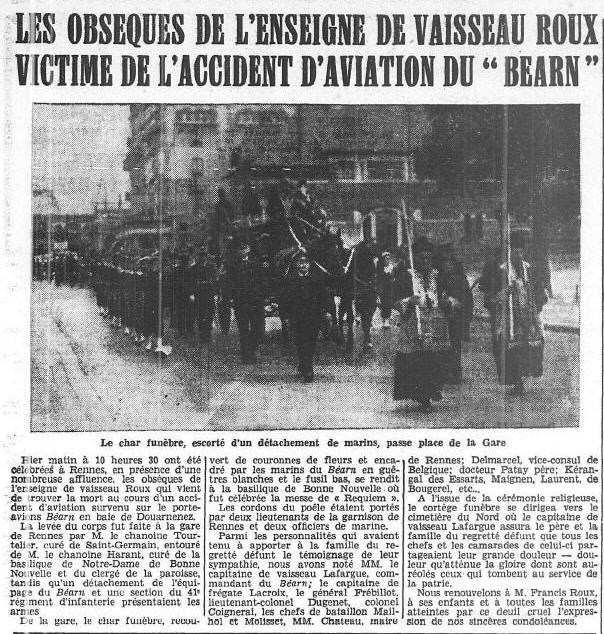 Vilaine) - Décédé le 20 juillet 1938 en baie de DOUARNENEZ