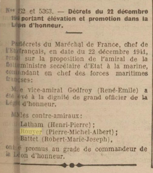 d'honneur le 22 décembre 1941