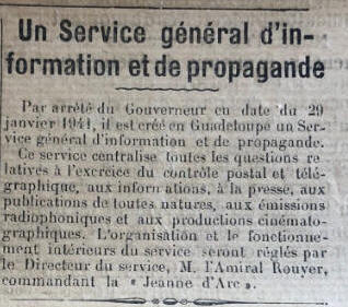 "Miroir de la Guadeloupe" daté du 12 février 1941, est annoncé
