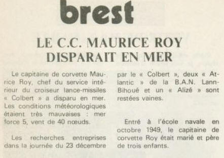 Par décret du 28 juin 1958, le capitaine de corvette Roy a été nommé