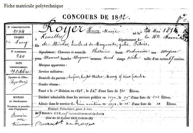 Élève de l'École polytechnique le 1er novembre 1892, opte pour le