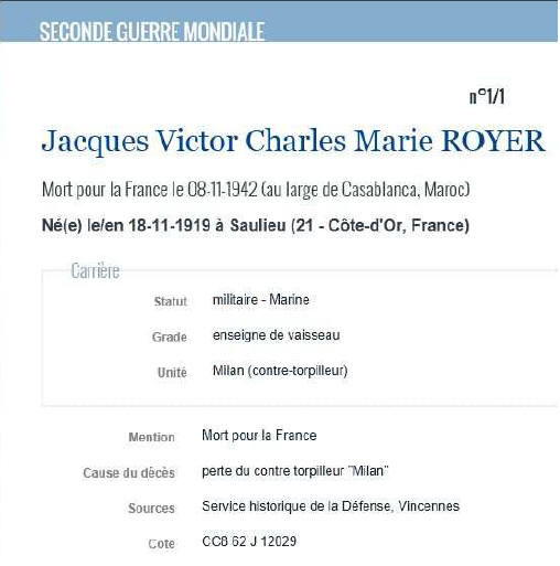 (Côte-d'Or) - Décédé le 8 novembre 1942 à CASABLANCA (Maroc)