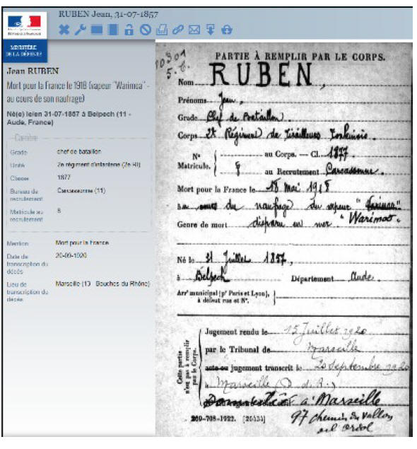 BELPECH (Aude) - Disparu en mer le 18 mai 1918, naufrage du vapeur "WARRIMOO".