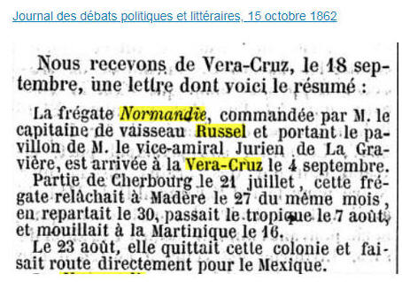 décembre 1862 à VERA CRUZ (Mexique)