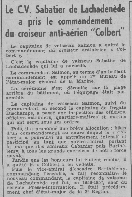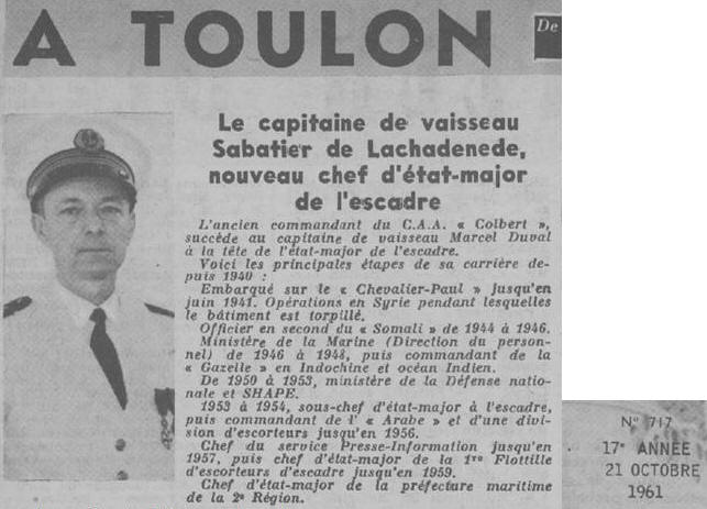 lance-missile Colbert du 21 octobre 1960 au 6 octobre 1961.