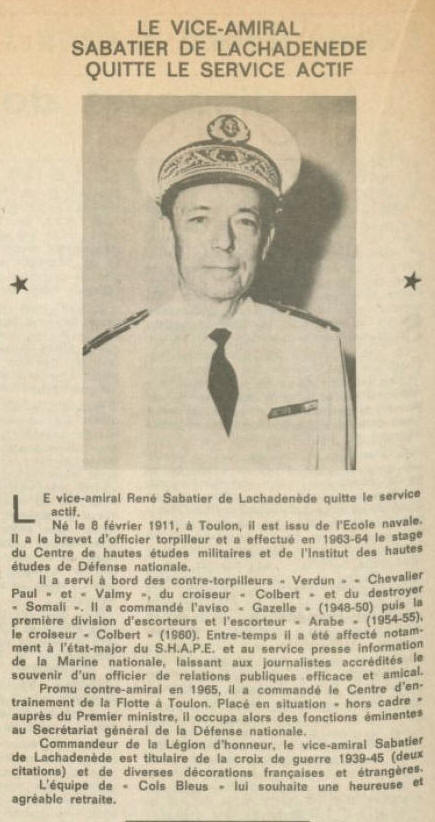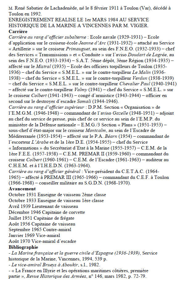 SABATIER de LACHADENÈDE, né à COTIGNAC, décédé à TOULON (1874-1960),