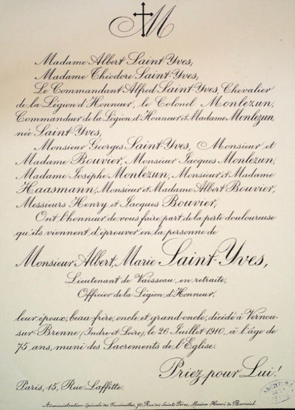 ORLEANS (Loiret) - Décédé le 26 juillet 1910 à VERNOU sur BRENNE
