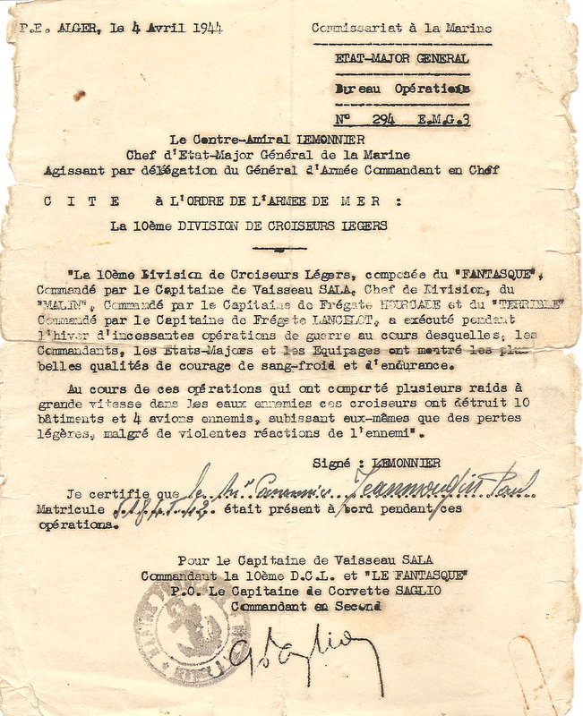 Engagé volontaire en mars 1915, il embarque sur le "D'ENTRECASTEAUX"