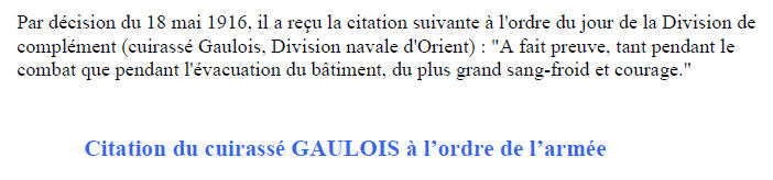 Par décision du 18 mai 1916, il a reçu la citation suivante à