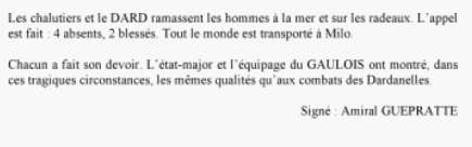 Division navale d'Orient) : "A fait preuve, tant pendant le combat