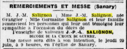 Par décision du 10 mars 1915, l'enseigne de vaisseau Salignon a été