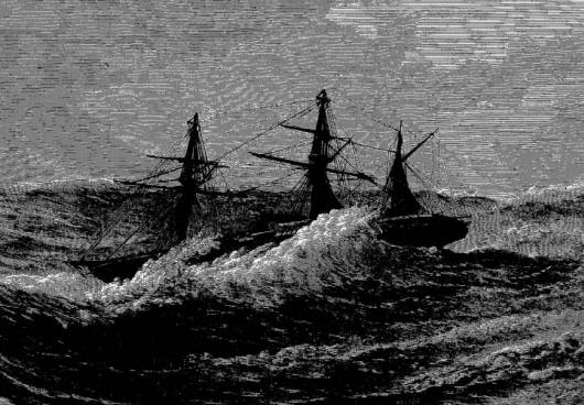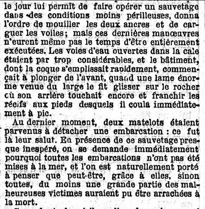 gros temps. Jeté sur des récifs, il coule avec une telle rapidité