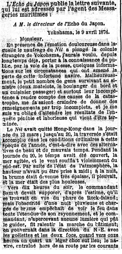 drame terrible se déroule en mer du Japon. Le paquebot Le Nil, un