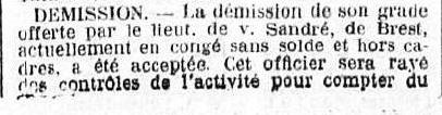 réserve le 17 novembre 1913; port TOULON suite à démission