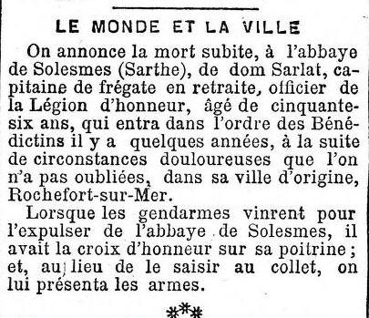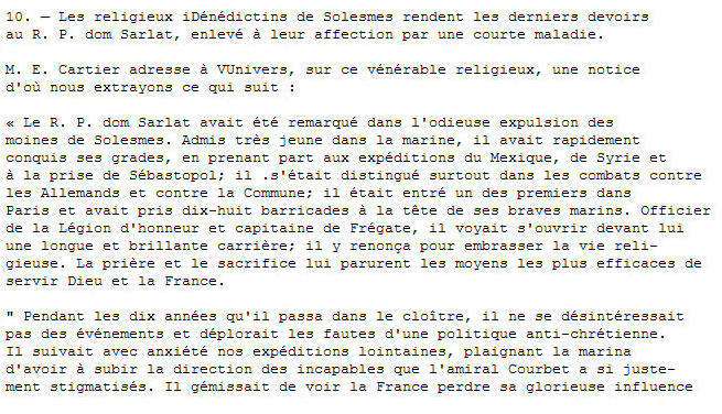 Entre au noviciat des Bénédictins de SOLESMES en juin 1875 et y