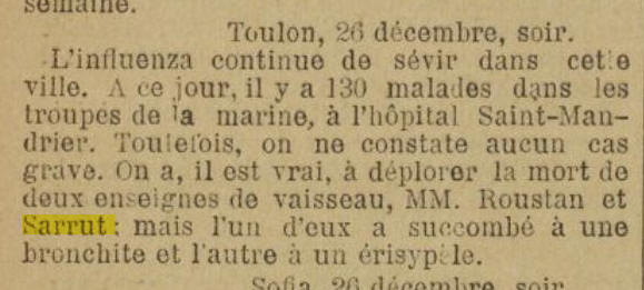 BREST (Finistère) - Décédé le 25 décembre 1889 à TOULON (Var)