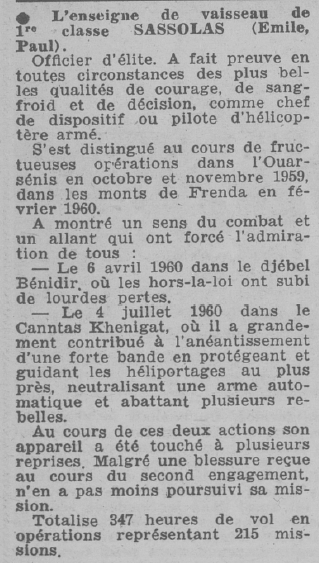 1960 : L’Enseigne de vaisseau de 1ère classe SASSOLAS (Emile, Paul)