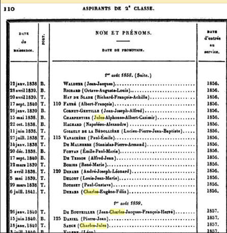 Aspirant de 2ème classe le 1er août 1859; port TOULON.