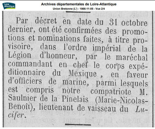 Chevalier de la Légion d'Honneur le 15 août 1866.