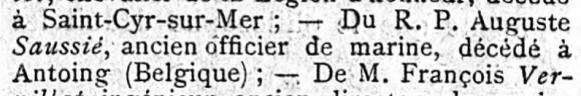 Décédé le 9 avril 1914 à ANTOING (Belgique)