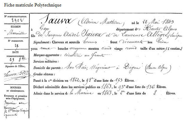 Élève de l'École polytechnique en 1861, opte pour la Marine.