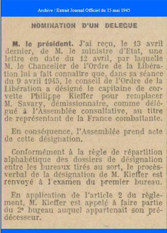 d'être appelé à siéger, en octobre 1944, à l'Assemblée consultative