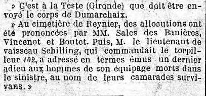 (nomination du 7 décembre 1885), Commandant la chaloupe-canonnière