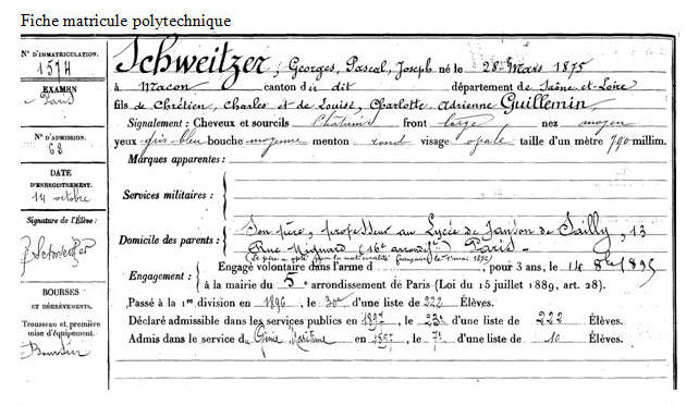 Élève de l'École polytechnique le 1er novembre 1895, opte pour le