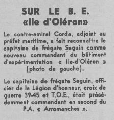 le Bâtiment d'essais et d'expérimentation "Ile d'Oléron", du 13