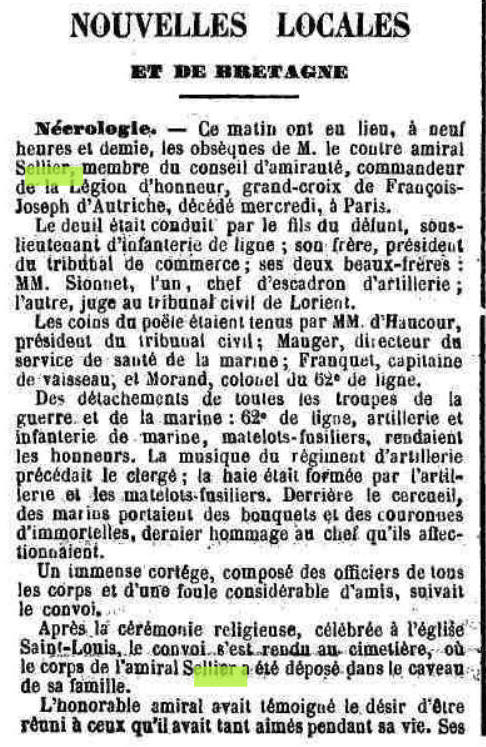 LORIENT (Morbihan) - Décédé le 24 novembre 1880 à PARIS VIIIème
