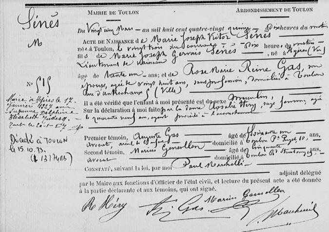 Décédé le 15 octobre 1973 à TOULON (Var)