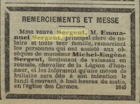 1911 à Toulon (Var). Commissaire adjoint de la Marine