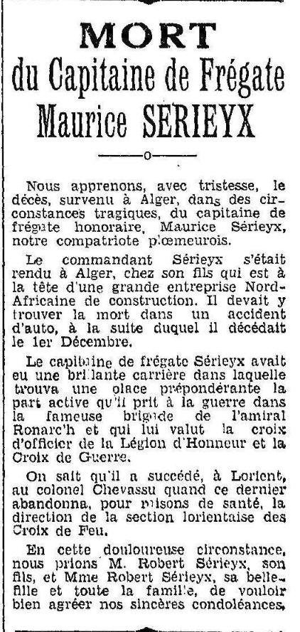 (Allier) - Décédé le 1er décembre 1936 à ALGER (Algérie)