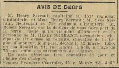 l'Île de BRÉHAT (Côtes-d'Armor) - Décédé le 12 janvier 1920 à BREST