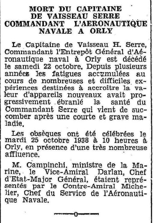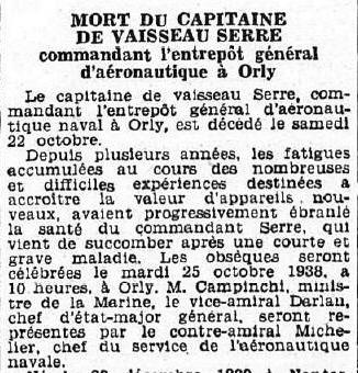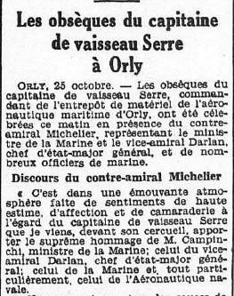 célébrées le 25 octobre 1938 à ORLY, le contre-amiral MICHELIER aura