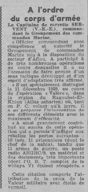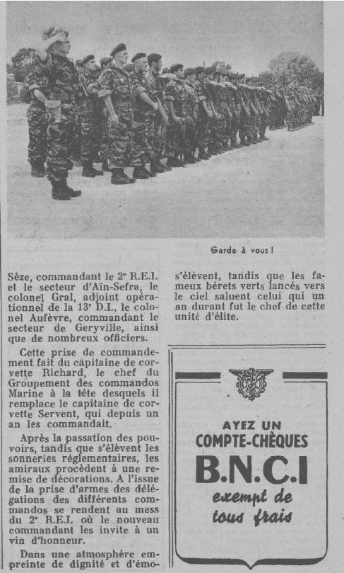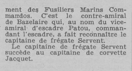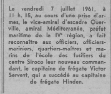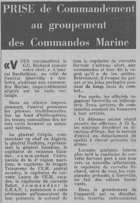 30 octobre 1965, commande le Groupement des Fusiliers Marins