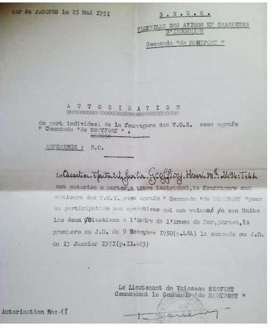 22 aout 1952, adjoint Commando à l'Amiral Commandant les Forces