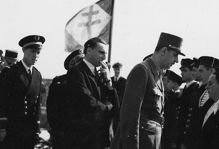 Le Général de Gaulle à bord du Detroyat en rade d'Alger, printemps