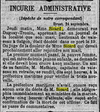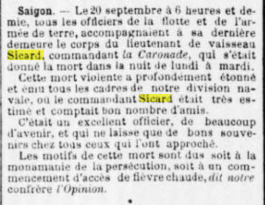 COGNAC (Charente) - Décédé le 19 septembre 1899 à SAÏGON