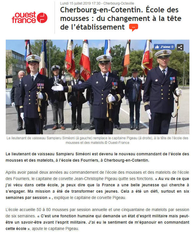 Commandant de l'Ecole des mousses et des matelots à Cherbourg en