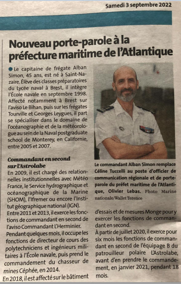 capitaine de frégate Alban Simon comme commandant de l'équipage B du