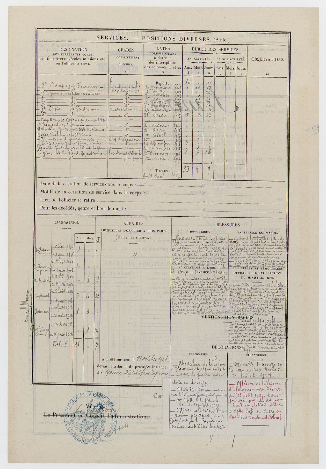 d'honneur, le 13 août 1927
