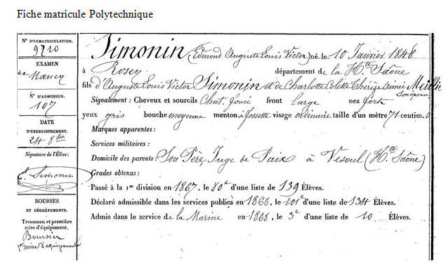 Élève de l'École polytechnique en 1866, opte pour la Marine.