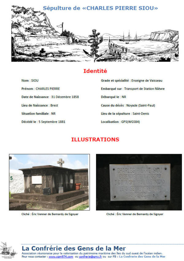- Décédé le 23 novembre 1881 à SAINT PAUL, au bassin de Bernica (La