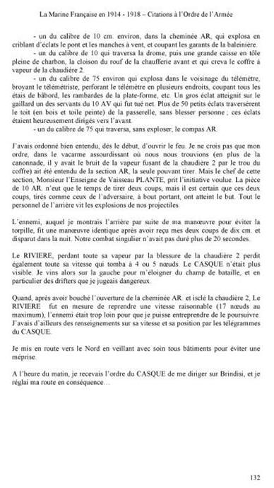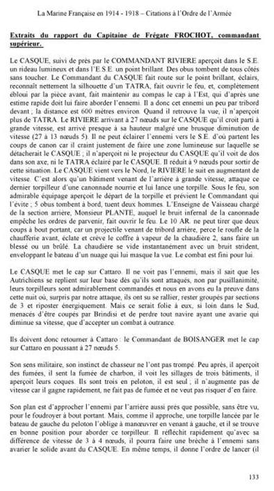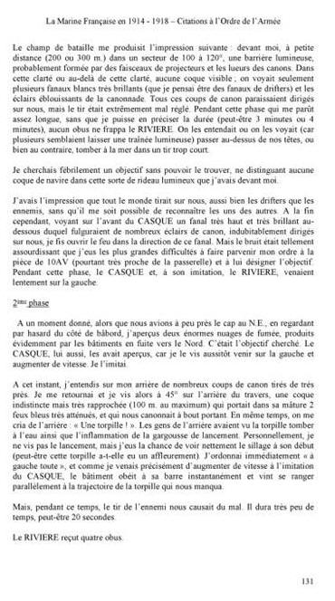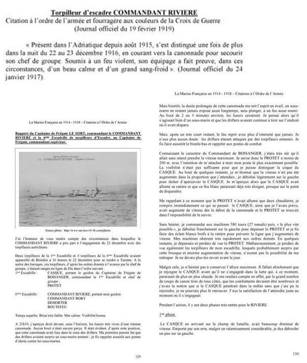 torpilleur "COMMANDANT-RIVIÈRE", il est cité à l'ordre de l'Armée