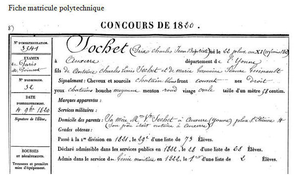 Ingénieur de 1ère classe le 1er septembre 1846; port TOULON