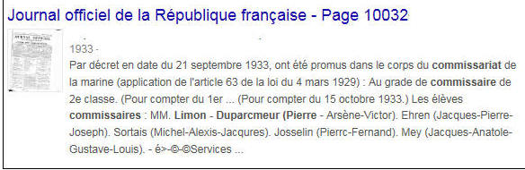 Commissaire de 3ème classe le 15 octobre 1933