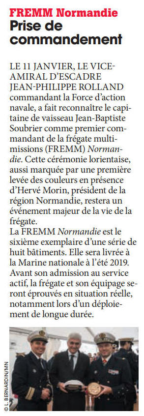 de la frégate multi-missions (FREMM) Normandie le 11 janvier 2019
