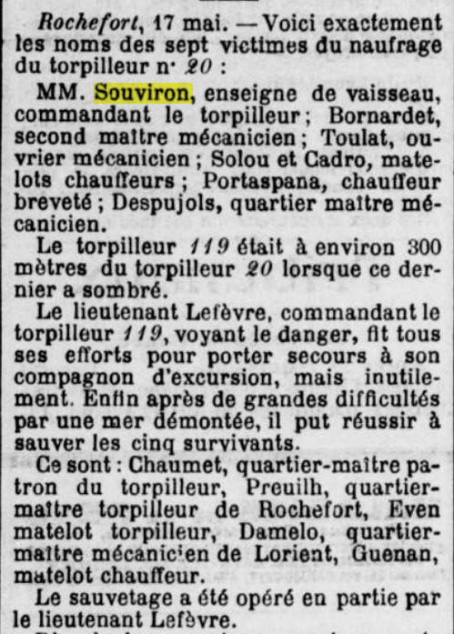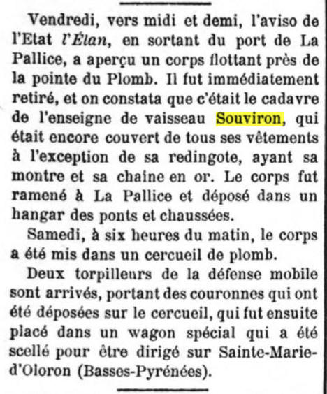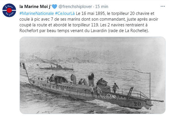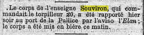 le 31 mai 1895 par l'aviso "ELAN" de l'École de pilotage